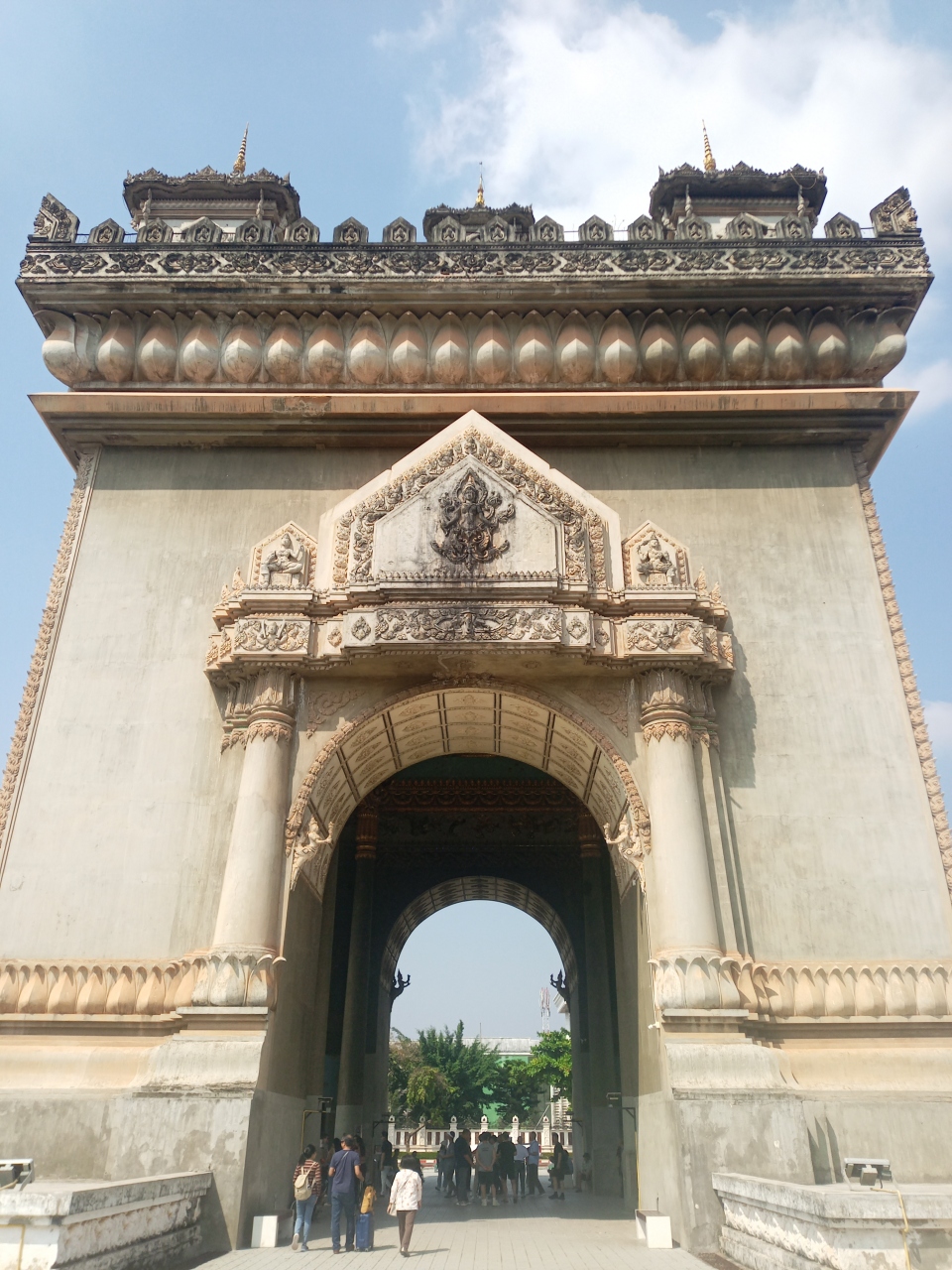 立派な建物です。内部はラオス風の装飾がなされています。パトゥーサイは1960年代に建てられた凱旋門ですね。勝った相手はフランス。フランスからの独立記念モニュメントです。でもフランスに勝ったのにフランス風モニュメントとはラオスの皆さんは心が広いですね。街中にも西欧風のたてものは割と多いと思います。