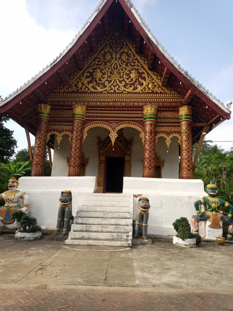 プーシーの丘の登山口に行く途中にあります。よく横を通ってはいたんですが中に入ってみると古そうな仏塔があり静かな雰囲気の境内でした。参拝している人は少しいらっしゃいましたが観光客などはほぼいませんでした。仏塔がメインだと思うんですがそれ以外にも祠のようなものがあり、そこに安置されている仏様や祠の前の建造物などが面白かったです。日本で言えば狛犬や金剛力士像のようなものがあります。どちらかというと怖いというよりコミカルな感じがしました。境内は無料で入れるので近くを通られましたら一度行ってみるとよろしいと思います。