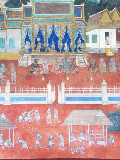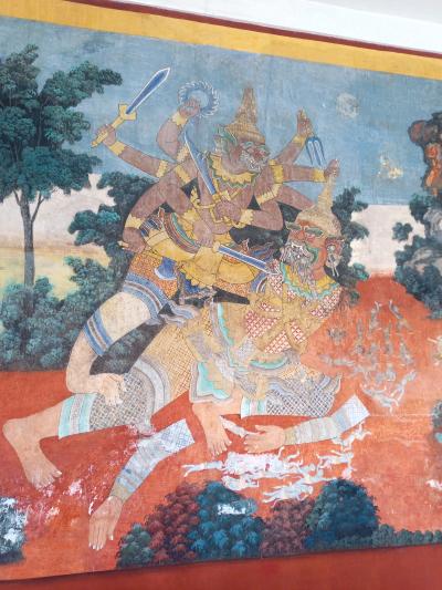 個人的には室内の壁画が興味深いものでした。ラーマヤーナの伝説を表現したものと思われます。きれいなものなのでそれほど古いものではない気がしましたが、素人なので正確ではありません。壁画は非常に美しく、それぞれの場面が美しく描かれていました。壁画を見るだけでも価値があると思います。- 旅行時期