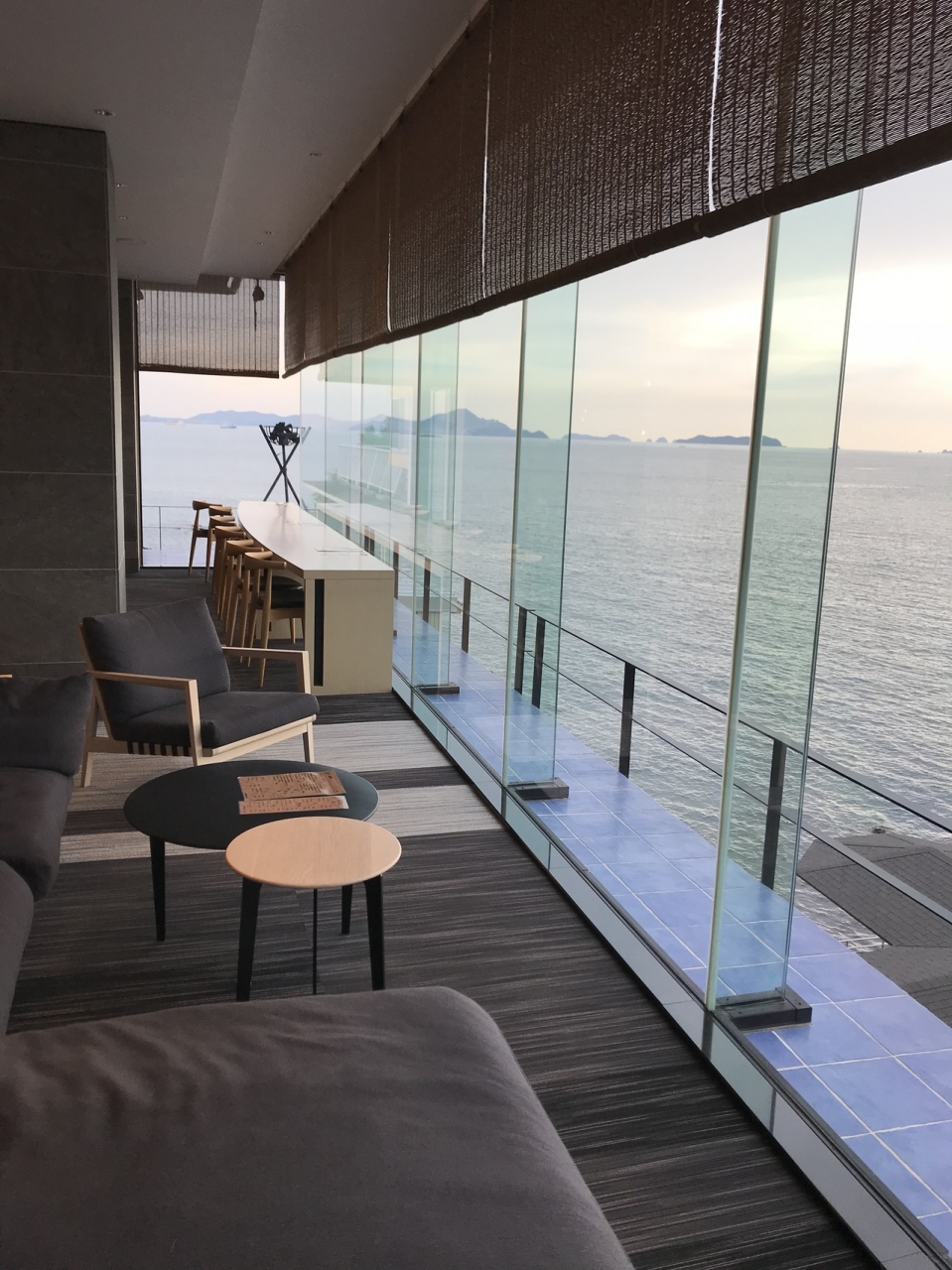ロビーが海に面していてcaféになっている感じがとても素敵。