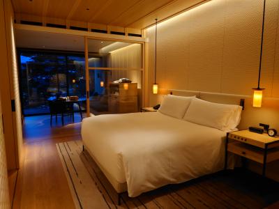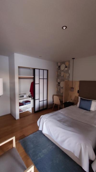 夫婦で1泊利用。チェックイン時にラウンジに通してもらい、ビールもいただいたので少し良い部屋なのだと思います。前日のハイアットほど広くはないものの、湖が見えて寝室エリアとソファーのエリアが分かれた広さのある部屋で、夜は花火を楽しむことができました。食事は夕朝食ともにビュッフェでしたが、種類豊富でたくさんいただくことができました。ビールが来るのが少し遅かったですが、夜寒いとお伝えすると、まだ暖房を使えない季節なのでと、ヒーターと毛布を持ってきていただきました。