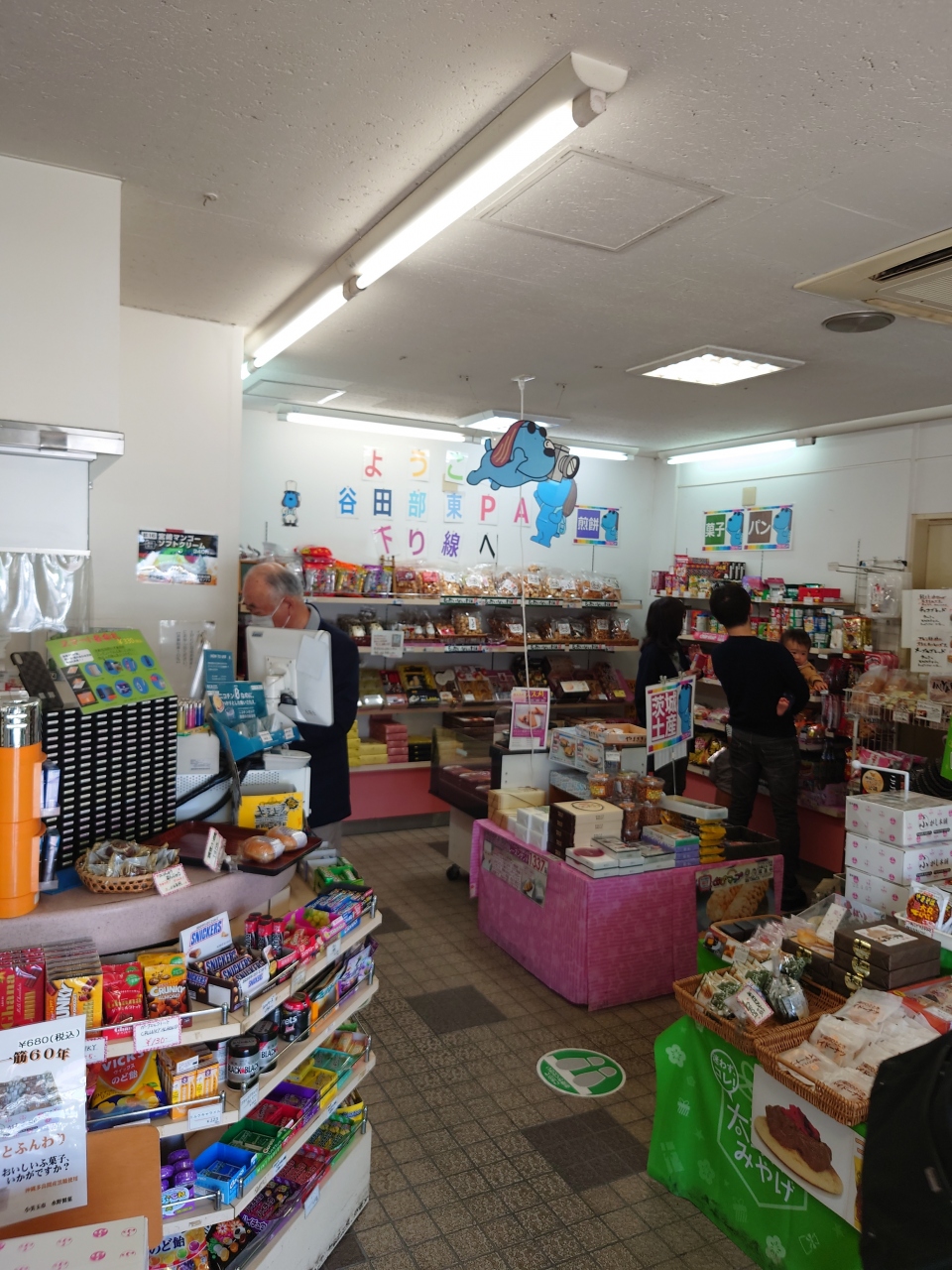 こじんまりとしていて今回立ち寄ったPAの中では最も狭く、雰囲気も昔ながらといった感じです。土産売り場も15㎡程度でした。お土産売り場には東京のもの(草加せんべいなど)もあり、プリングルス神田カレー味を購入しました。