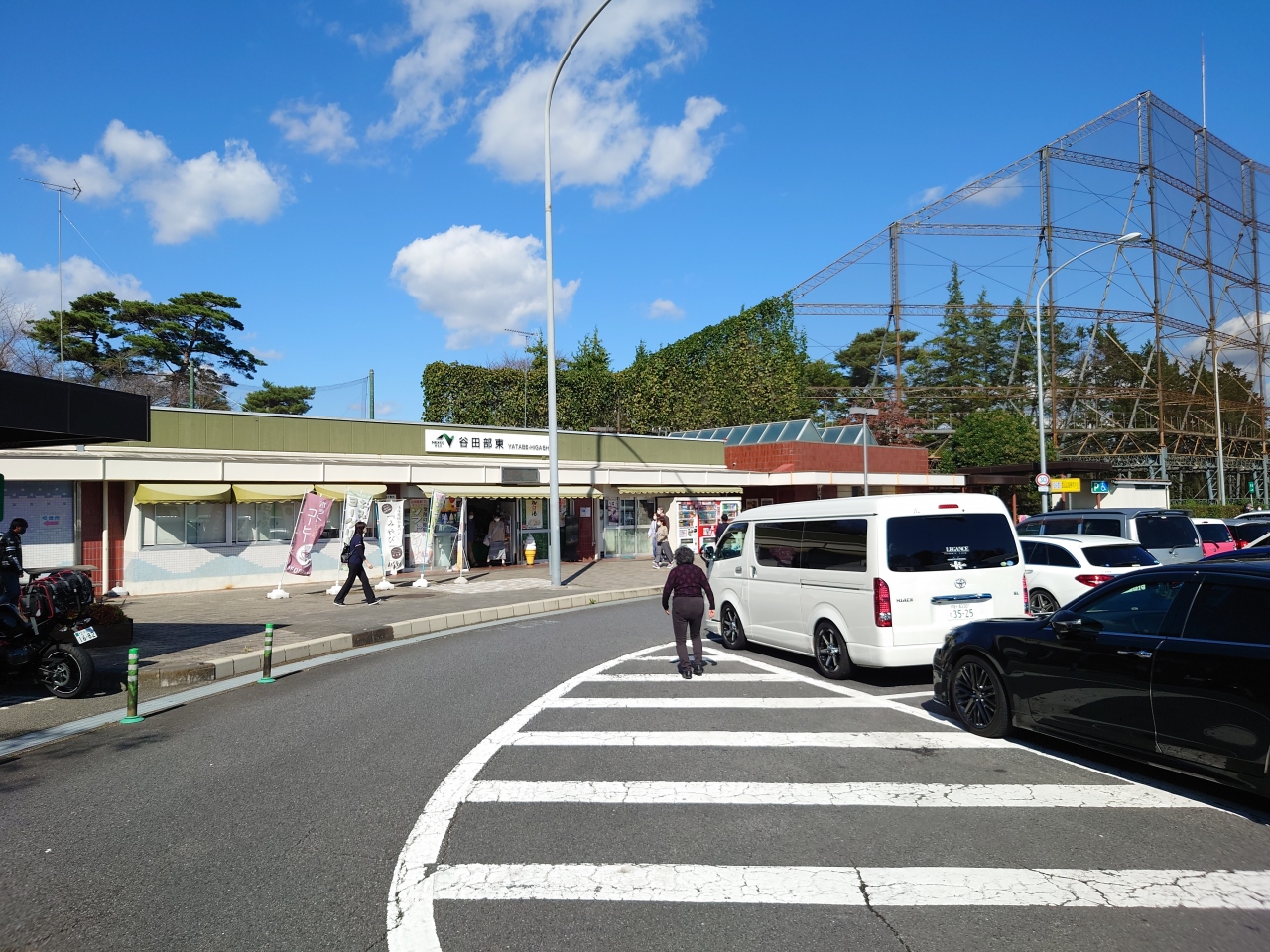 特徴は大きく2点。①江戸時代風の建物と中の売店やフードコート、②駐車スペースが広く、トイレは1か所ではなく、離れた場所に停めた場合でも行きやすい