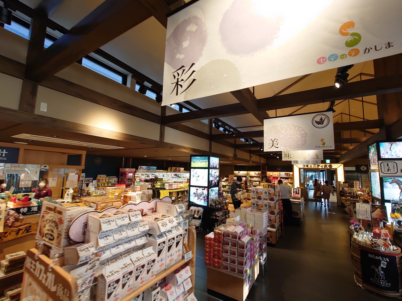 トイレ、フードコート、土産売り場に加えて、屋外の売店やペット専用エリア、売店内には鉄道模型などがあります。お土産の陳列もディスプレイなどで工夫があり、栃木県のものだけではなく喜多方ラーメンなど福島県のものも置いています。