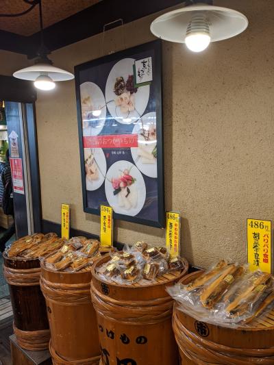 大きな漬物樽がたくさん並んでいて目を引きます。樽にはぬか漬けなど、奥には小分けのパックの漬物があり、自宅用でもお土産用でもどちらも使い勝手がよいです。- 旅行時期