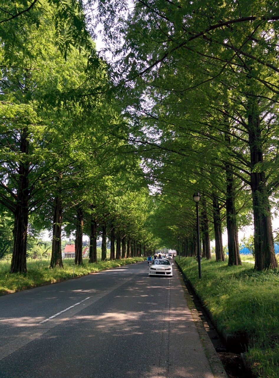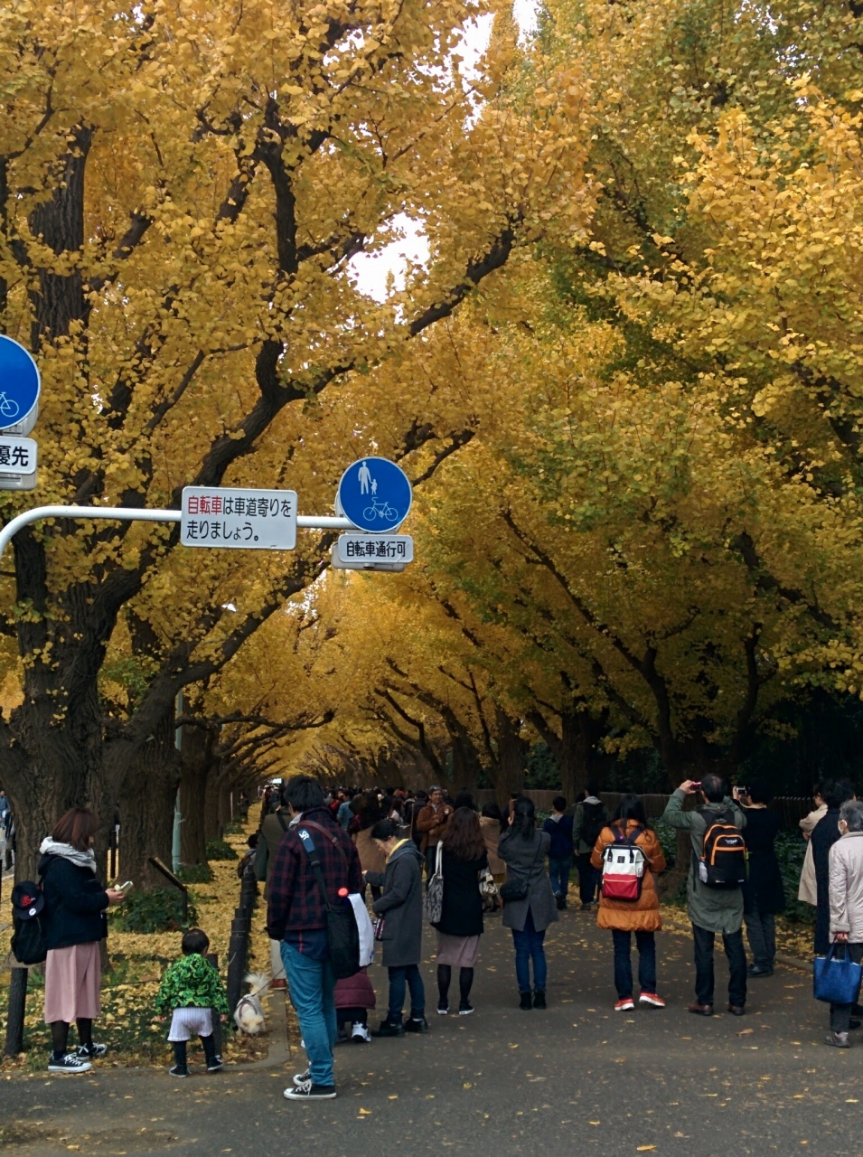 青山通りから明治神宮外苑まで続く、有名な並木道。人がたくさんいて、写真を撮るのも
