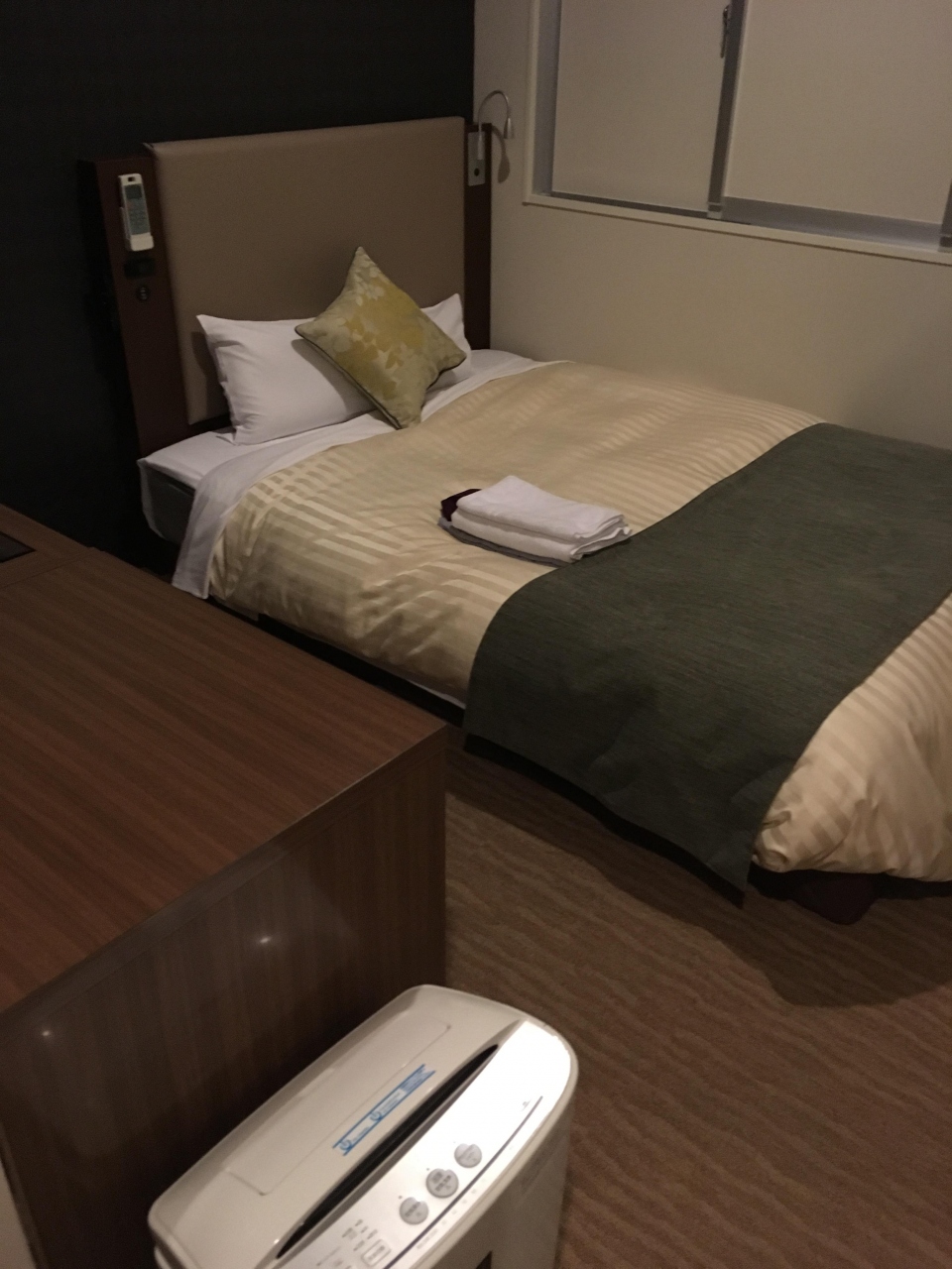 畳敷きでくつろげるけど、ベッドも寝心地よく、一人で泊まるにはちょうどよいと思います。