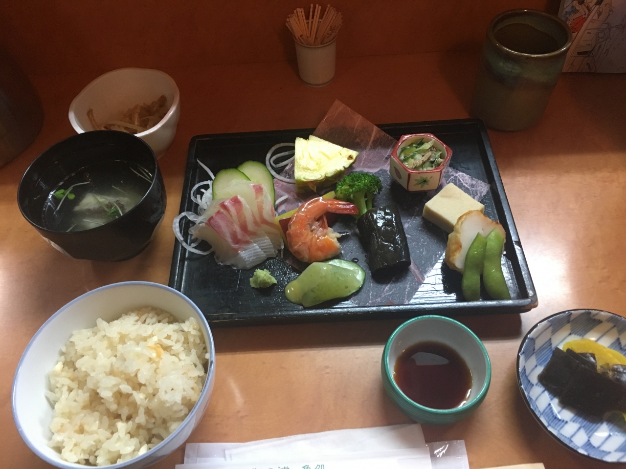 鯛めしはおひつで出されて、それを取り分けて食べました。鯛が丸ごと入っているとか、そういうドラマチックな演出はなかったけど、普通に美味しかったです。- 旅行時期