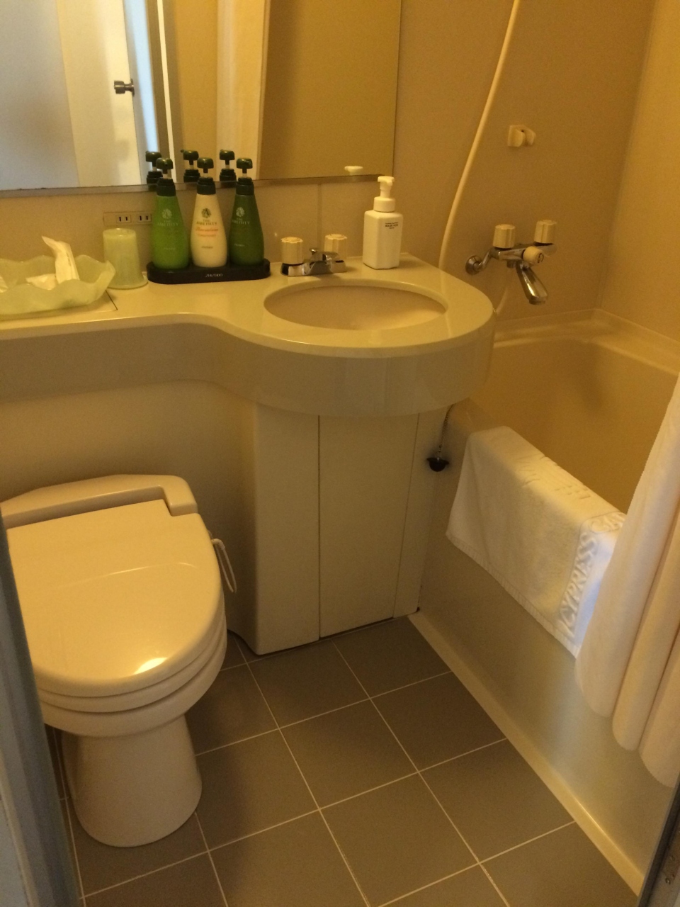 場所柄か、客室はせまい。ベッドと壁の間とか本当に狭かったですが、部屋の清潔感があり、バスルームもバスタブ広めで、きれいだったのでよかったです。