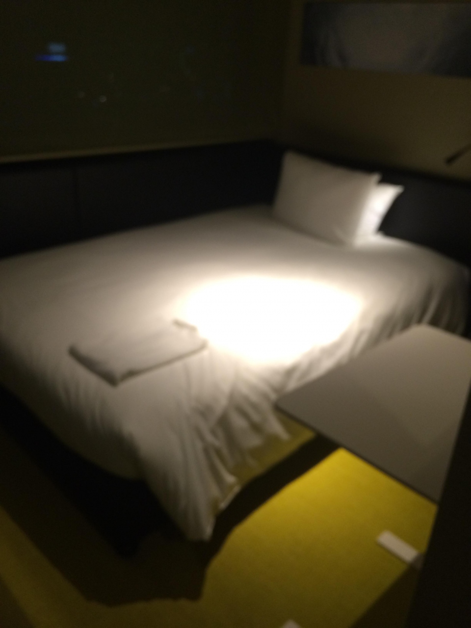 部屋はかなり狭く、窓の外は隣のビル!という感じですが、内装やベッドには清潔感があります。