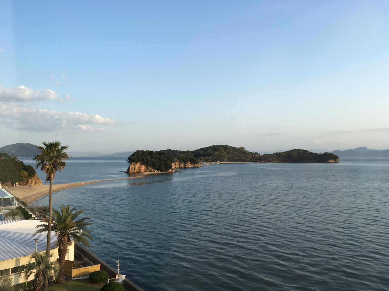 目の前にエンジェルロードを見れるのが感動的でした、夜にも散歩できる距離というのがいいです。夜も干潮時ライトアップされていて、ちょうど良い気温だったので、砂浜の散歩も気持ちよかったです。