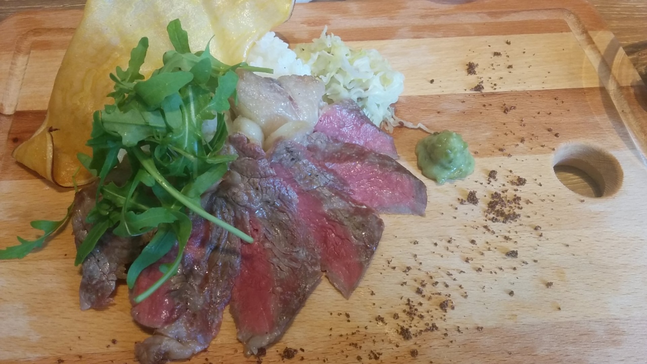 【40日熟成】熟成牛ランプグリルプレートと【40日熟成】熟成牛ロースグリルプレートを注文し2人でシェア。