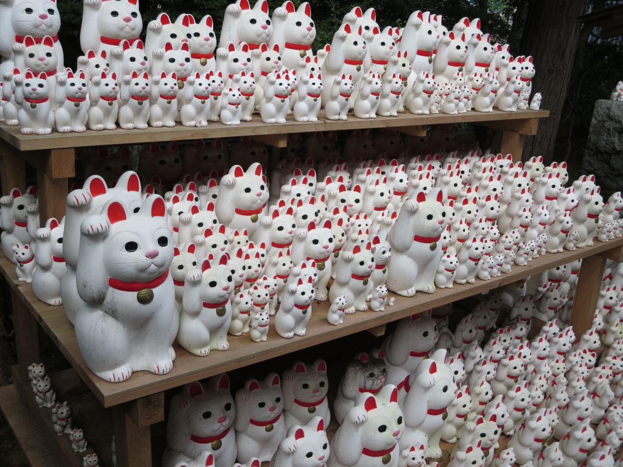 招猫観音の横が招き猫の奉納所になっていて、大小さまざまな招き猫まみれ状態。圧巻です。