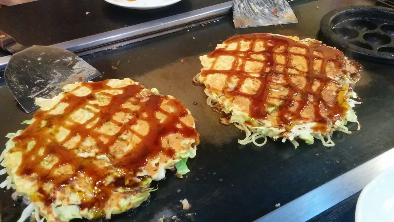 たこ焼きやピザ風お好み焼きなどのメニューもあるようです。- 旅行時期