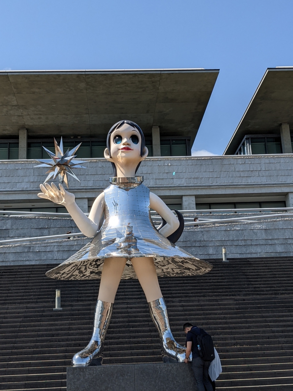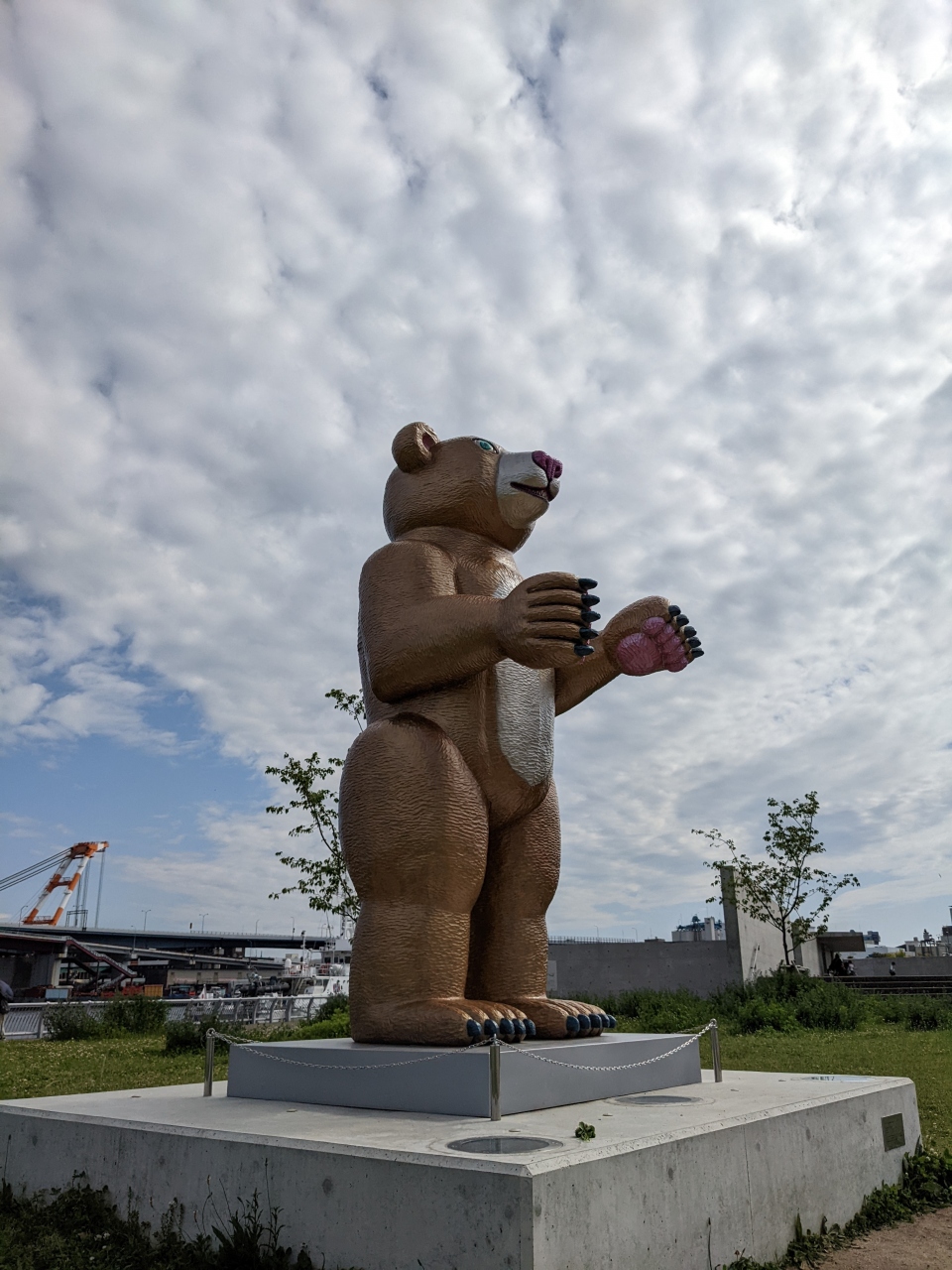 兵庫県立美術館のすぐそばにあります。海沿いにあり広々としていて、歩いていてとても気持ちの良い場所です。彫刻家の三沢厚彦氏の作品があると聞いて行ってみました。高さ3.5mもある大きなクマの彫刻で存在感抜群です。