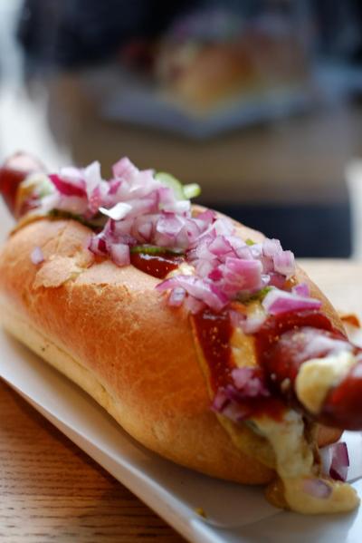 カリッと焼いたパンのホットドッグ、確かに美味しいです。今まで食べたホットドッグの中では確実に一番です。- 旅行時期