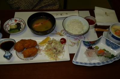てんぷらやステーキなどが選べますが、私はお造りとカキフライ(季節限定)をチョイス。