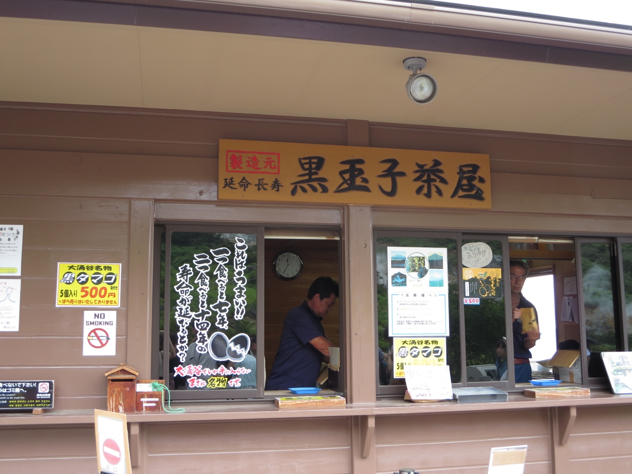 1個食べると7年寿命がのびるという、大涌谷名物の黒玉子。