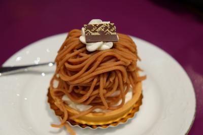 モンブランとブラックフォレストケーキ、紅茶とショコラ・ショーを注文しました。