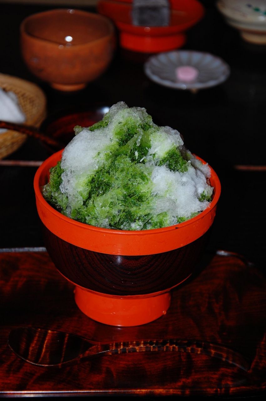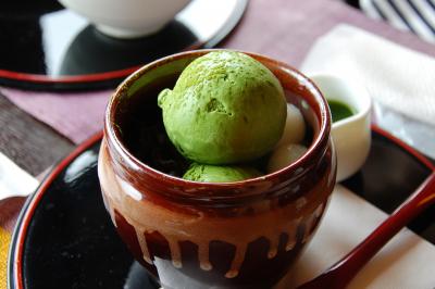 流れる川を眺めながらのんびり抹茶アイスを頂きました。