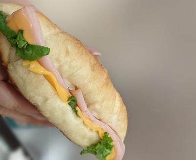 「ハムチーズ塩パン」を購入しました。塩パンでロースハムとチェダーチーズをはさんでいます。パンの塩加減もよく、ハムとチーズという間違いない組み合わせで普通に美味しくいただきました。- 旅行時期