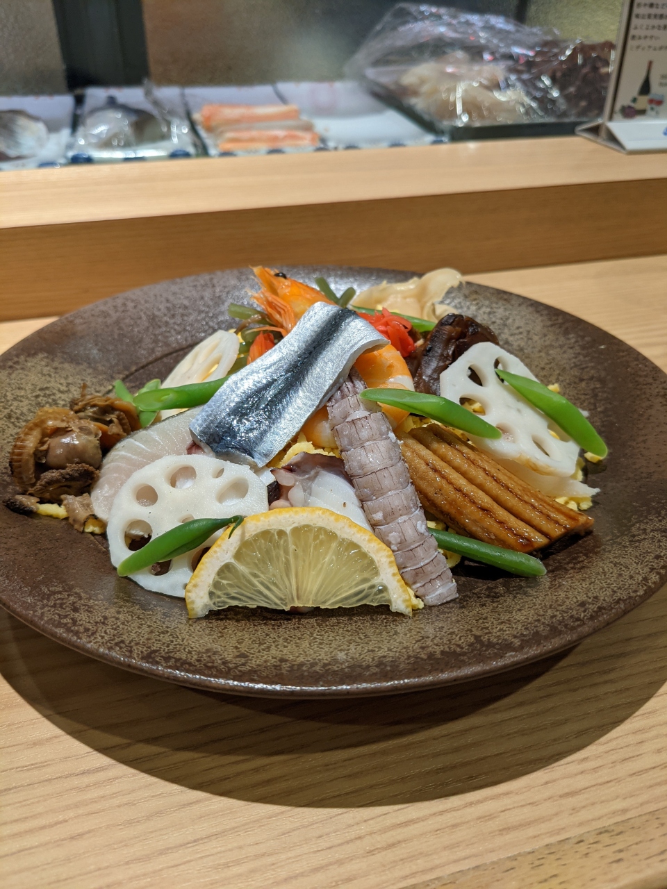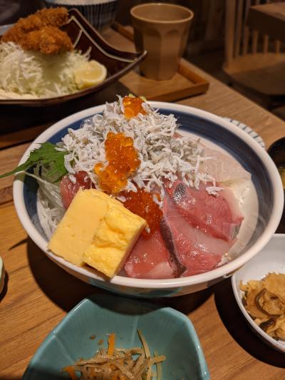 岡山名物のばら寿司をいただきました。いろいろな具材が盛られたちらし寿司。とても美味しくいただきました。- 旅行時期