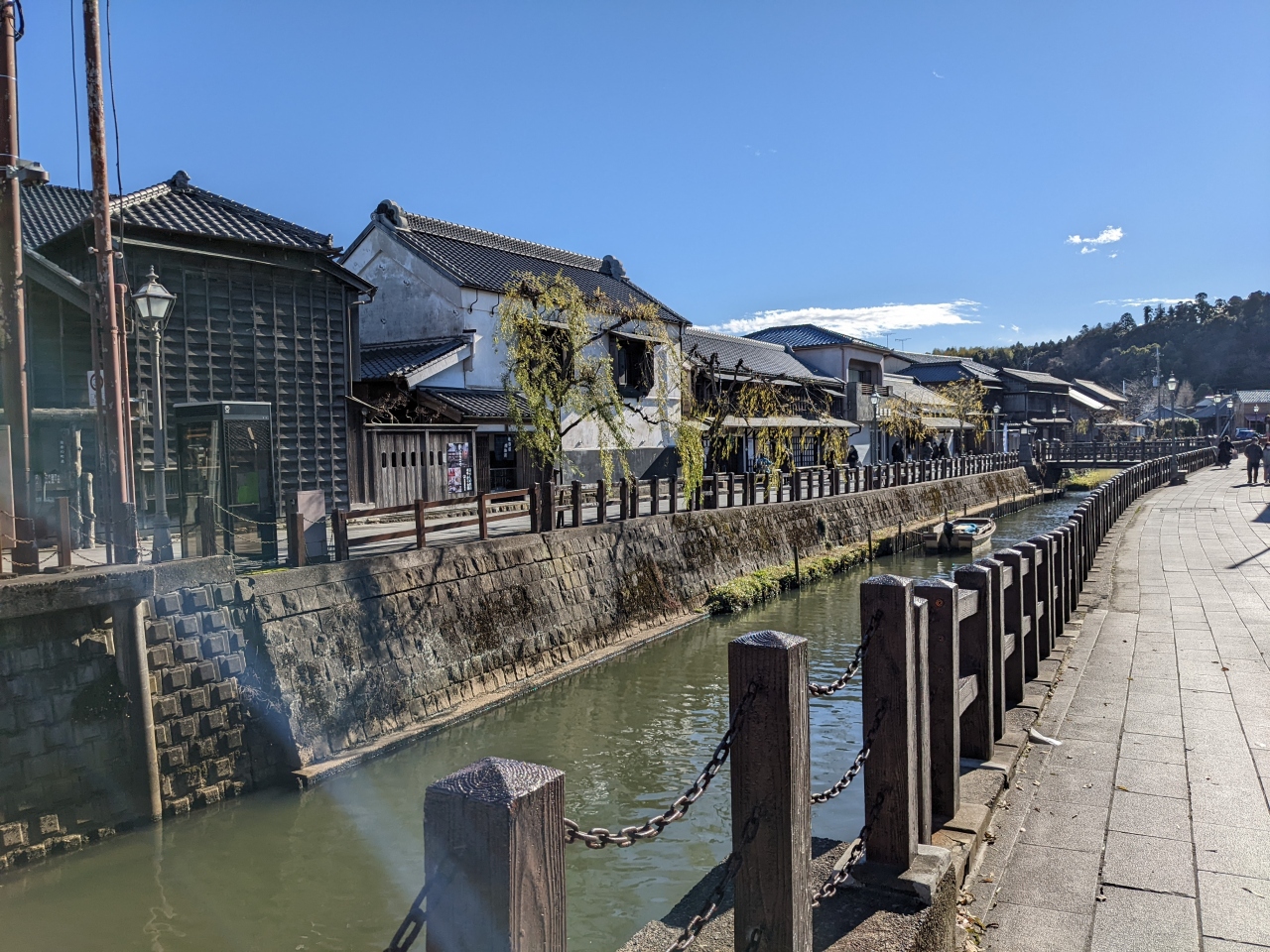 佐原市を流れる小野川沿いに江戸時代から明治時代にかけての古い建物が並んでいます。かつての商家などが保存され利用されていて、趣のある風景を楽しめます。他の小江戸と呼ばれるような地域と比べると規模的には小さめなのでサクッと歩いてまわれます。ちょっとお散歩するのにいい感じです。