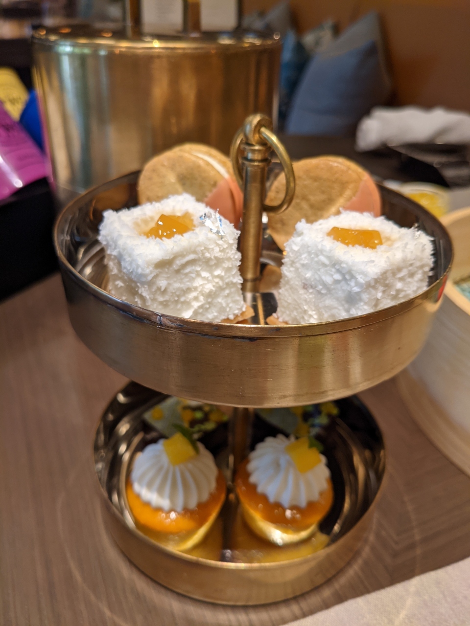 ウエルカムドリンクのスパークリングワインから始まり、セイボリー、スイーツどれも美味しくいただきました。紅茶はロンネフェルト。制限はなく飲み放題です。リーズナブルで満足できる内容でした。- 旅行時期