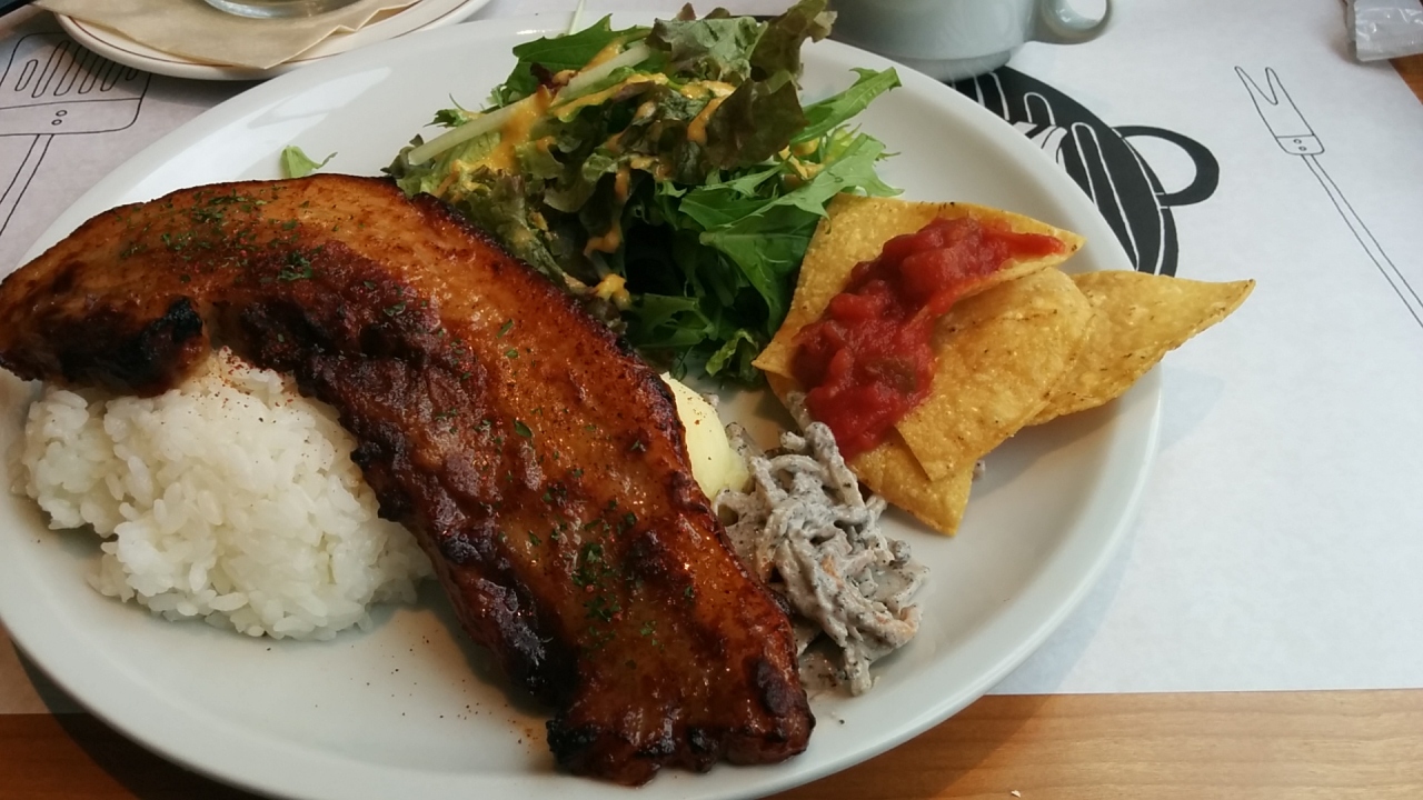 私は「濃厚トマトのベジタブルカレー」(1000円)、同行者は「みやじ豚のBBQプレート」(1200円)を注文。カレーは野菜の味が濃くて美味しいです。BBQプレートは厚切りのポークにマッシュポテトやグリーンサラダ、トルティーヤチップスなどの盛り合わせです。ポークは脂身が多めでボリュームたっぷりです。- 旅行時期