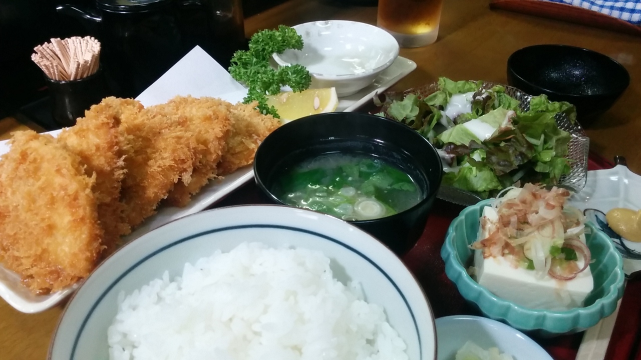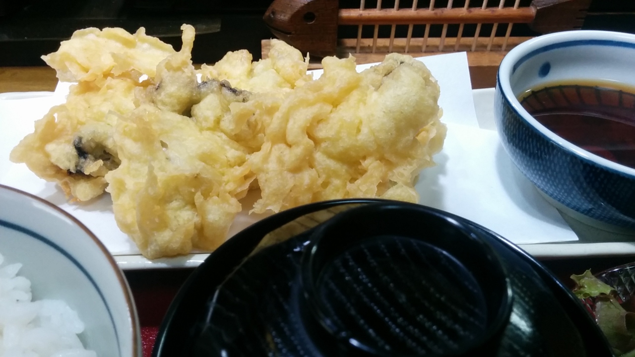 私は牡蠣の天ぷら定食、同行者はカジキフライ定食を注文。両方850円です。