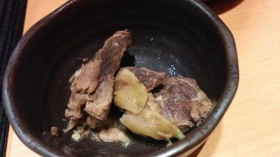 「まぐろのあら煮」は80円という激安価格にひかれて注文。お椀にほんのちょっとで、味もそれほどでも・・。