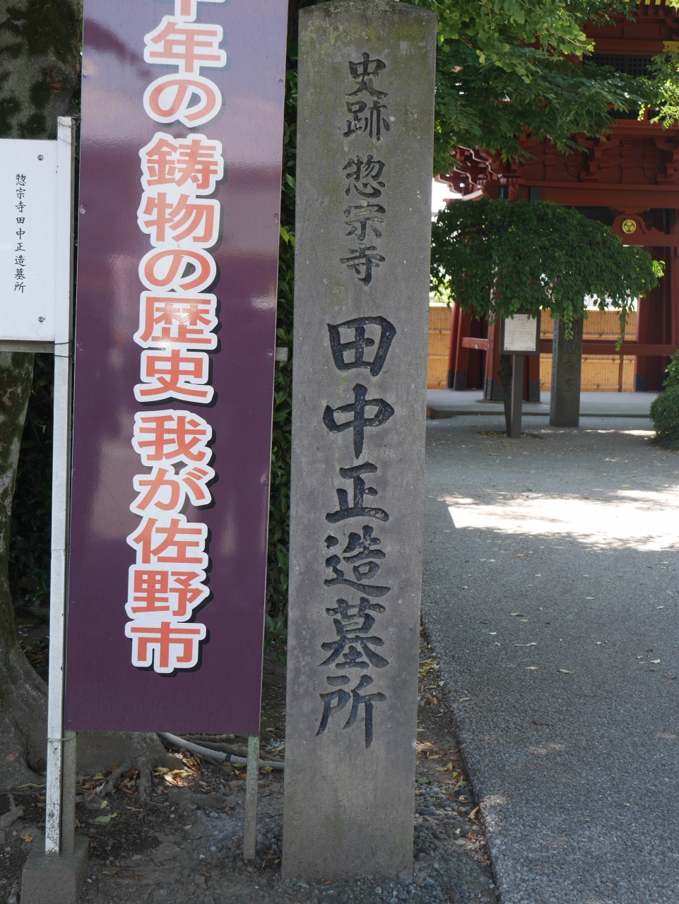 日本初の公害事件といわれる足尾銅山鉱毒事件において鉱毒被害を訴える活動の中心人物だった田中正造氏の墓所です。教科書でもおなじみの人物です。栃木県内に何か所か墓所があるそうですが、この惣宗寺(佐野厄除け大師)では田中氏の本葬が営まれたそうです。
