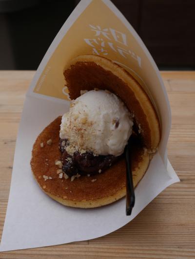 店舗の前にベンチが2つほどあり、あいていればそこで食べることができます。