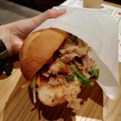 基本はテイクアウト専門店ですが、小さなスタンドテーブルとベンチがありました。