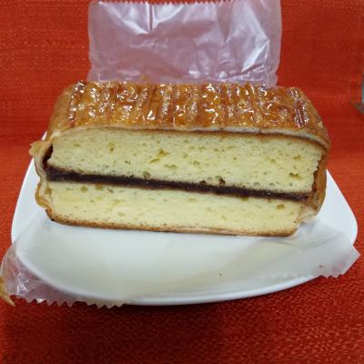 カステラをデニッシュ生地で包んであり、中にあんこがサンドされています。