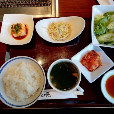 ランチセットにはナムルやサラダがついています。お野菜をたくさんいただけるのもうれしいです。- 旅行時期