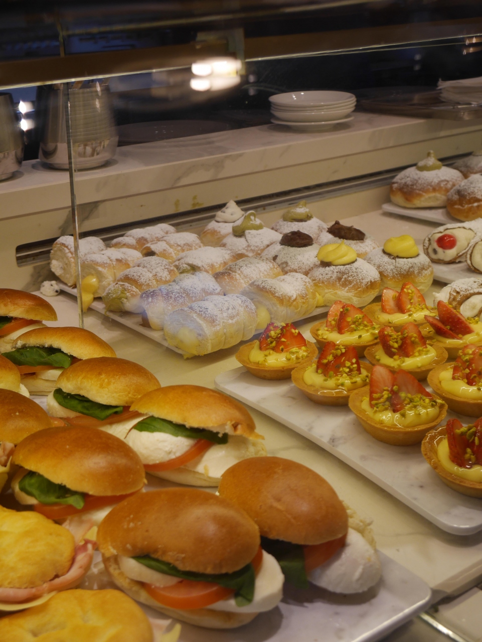 ショーケースにはサンドイッチや焼き菓子などがたくさん並んでいました。
