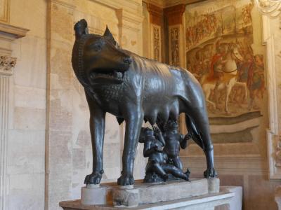 ロムルスとレムスと狼の像「カピトリーノの雌狼」は人気があり、人が絶えませんでした。