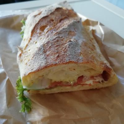 サンドイッチ(6ユーロ)とピッツァマルゲリータ(5ユーロ)を購入。ちゃんと温めてくれます。マルゲリータはピザパンのような感じで期待ほどの味ではなかったですが、サンドイッチは美味しかったです。- 旅行時期