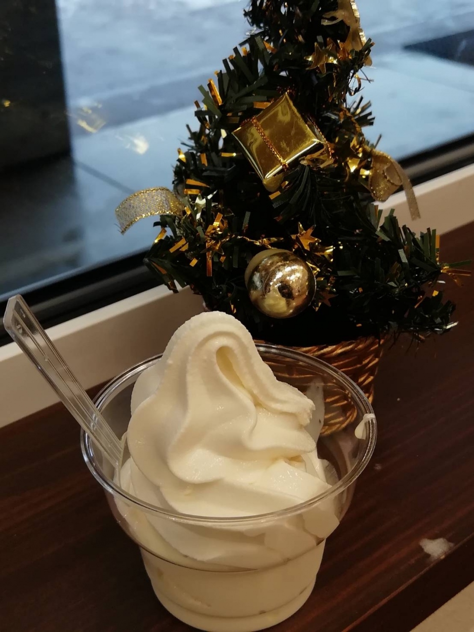 クレインズテラスでソフトクリームを購入。パプリカのジャムをかけた「丹頂ソフト」が名物のようですが、プレーンをいただきました。普通においしかったです。- 旅行時期
