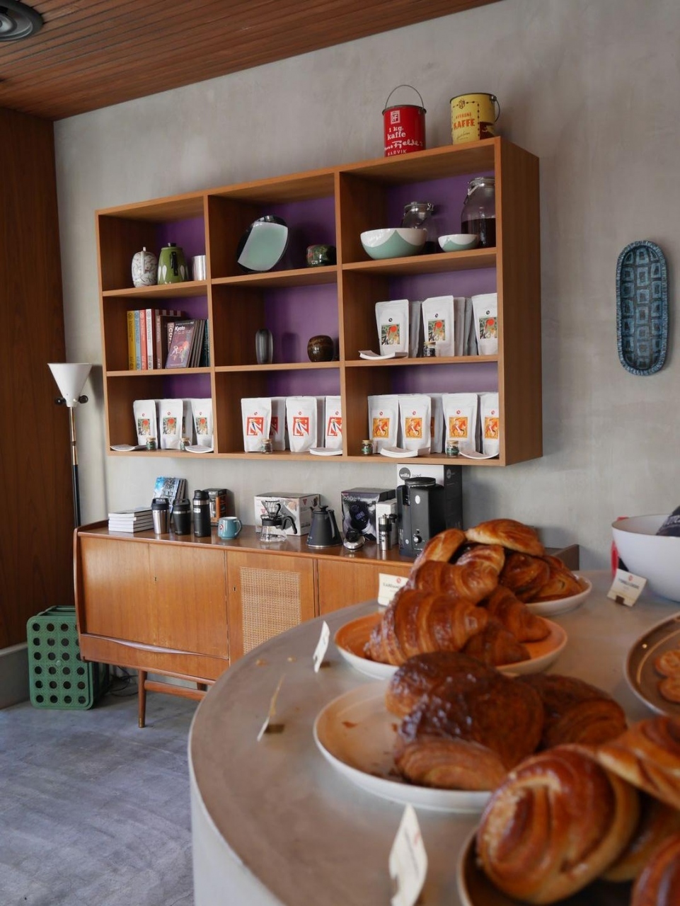 コーヒーなどのドリンクの他、デニッシュやマフィンなどもいろいろ売っています。ただしテイクアウトのみ。客席はありません。