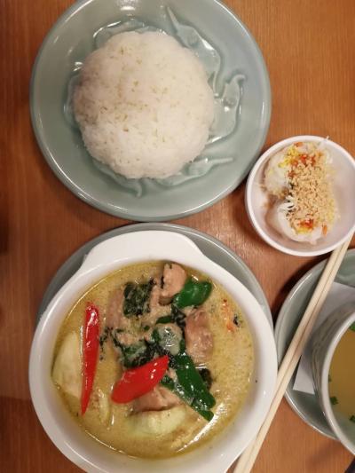 グリーンカレーのセットを注文しました。カレーとライスと生春巻き、スープがつきます。