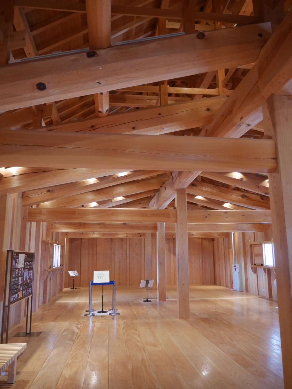 復元されたこの二の門内部を無料で見学できます。内部は檜の一種である能登ヒバが使われていて、まだ新しいこともありとてもきれいです。かつては弓などの武具を収納する場所だったそうです。復元工事の様子などの展示もありました。見学するには階段を登り、靴を脱ぐ必要があります。- 旅行時期