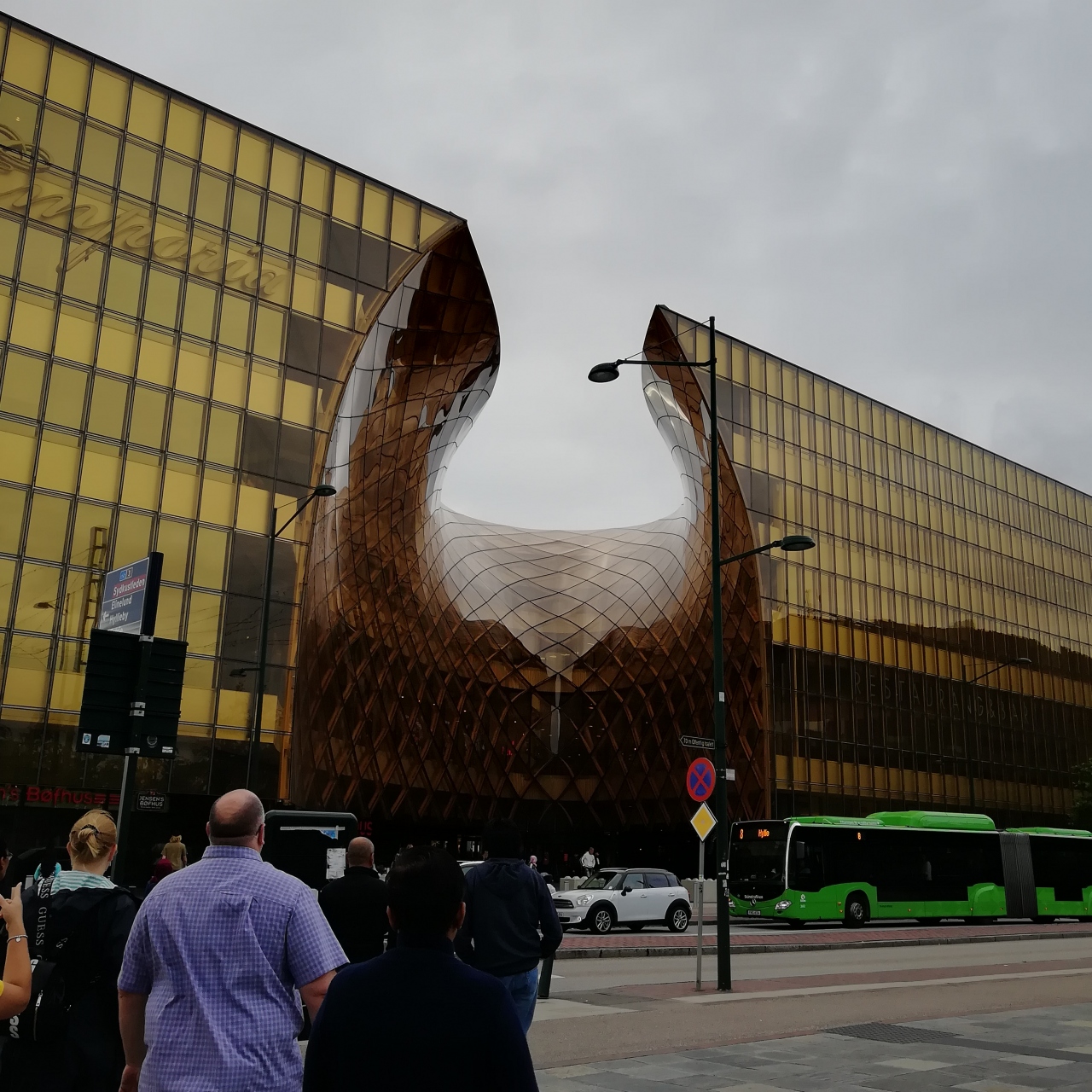 見どころはその外観です。ガラスで覆われたビルで、その一部が曲がりくねった奇抜なデザインです。こういうデザインの面白さを楽しめるのは、さすが北欧といった感じです。- 旅行時期