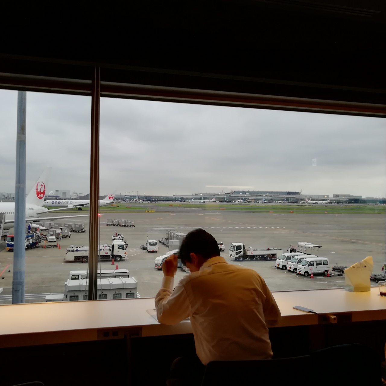 広さはありますが、ほぼ満席に近い状態でした。窓側は滑走路が目の前にあるので特に人気のようです。