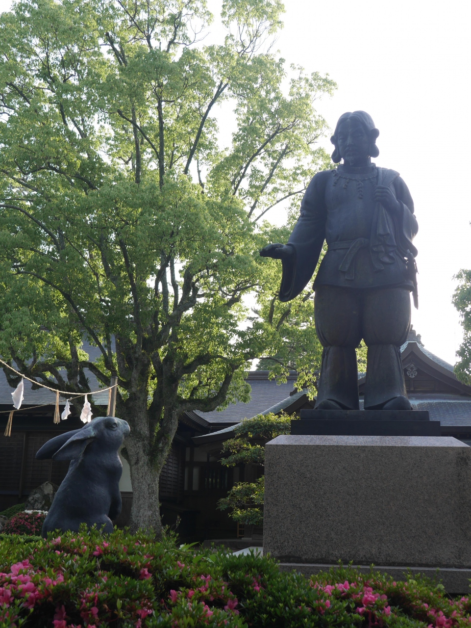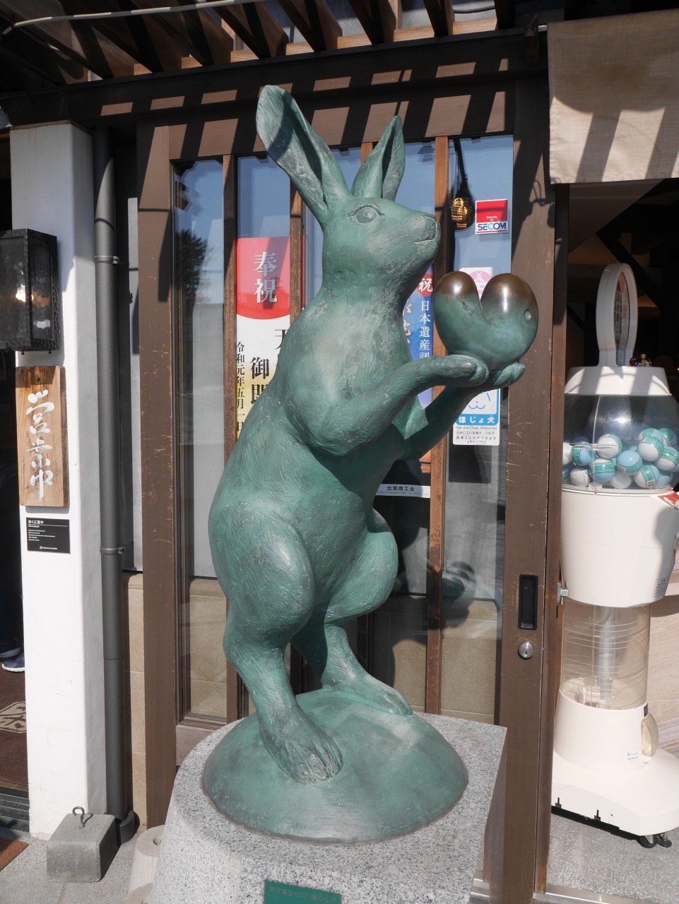 店頭の勾玉を持ったウサギのモニュメントが目印です。