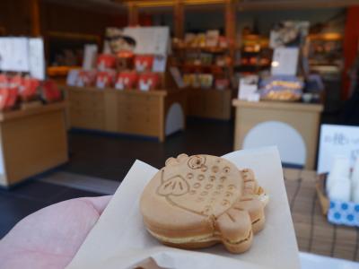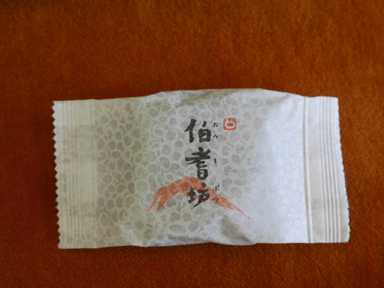「伯耆坊」(ほうきぼう)という求肥とつぶあんに砂糖をまぶしたお菓子を購入しました。びっくりするほど甘いお菓子でした。- 旅行時期
