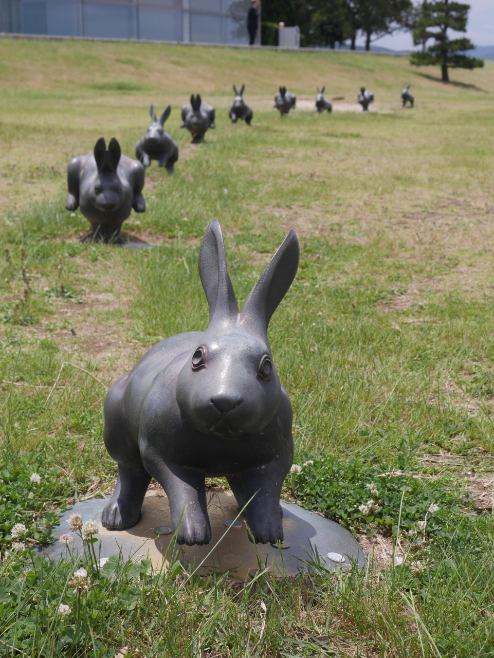 湖畔に並んだ12匹の「宍道湖うさぎ」を見に行きました。湖から2番目のウサギに西を向きながら触ると幸せが訪れる、と言われているそうです。シジミをお供えするとさらに効果UPだそうですが、硬貨もたくさんお供えされていました。かわいいうさぎのオブジェに癒されました。- 旅行時期