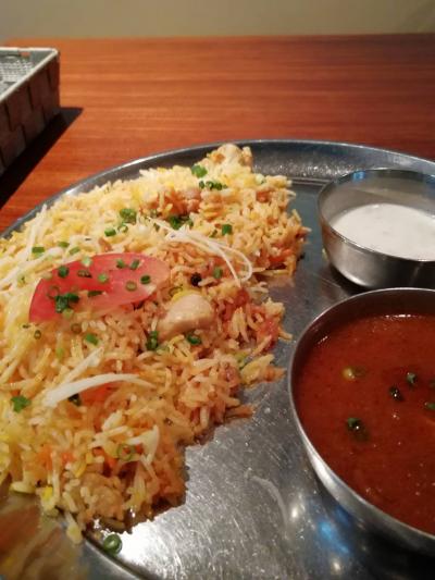 ランチのビリヤニはチキンビリヤニにサラダ、ライタ、好きなカレー1種がついて990円です。チキンの味がしみていて美味しいビリヤニでした。カレーはラムカレーをチョイス。カレーも美味しかったです。- 旅行時期