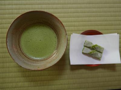 見学が終わったあと、お抹茶をいただきました(お菓子つきで400円。)庭園を眺めながらのんびりできて良かったです。- 旅行時期